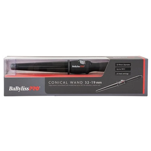 Frizz-free. Smooth. Shiny. Beautiful, softer curls with BaBylissPRO. The BaBylissPRO Ceramic Conical Curling Iron Large creates softer curls and waves, creatively and effortlessly. The 19-32mm ceramic conical barrel smooths the hair cuticle, ensuring a frizz-free, shiny finish every styling session. With speedy heat up to 195°C and 25 heat settings, BaBylissPRO Ceramic Conical Curling Iron Large is adept at styling all hairstyles and textures. Safety cool tip gives you even more control during styling, while the heat resistant mat is a handy bonus.