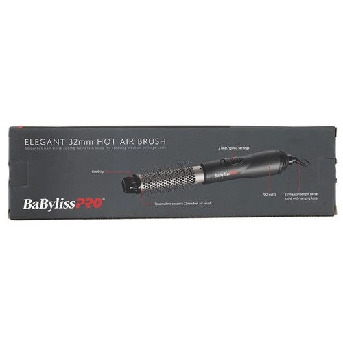 2-in-1 blow-dry and style! BaBylissPRO Elegant Hot Air Brush creates bouncy curls, luscious volume or sleek smoothness while you blow-dry. Feel the power with a 700 watt motor which gives you freedom to style as you desire. This Hot Air Brush is timesaving, budget friendly, multitasking hot air brush features a tourmaline ceramic barrel for sensational smoothness and shine. Ball-tipped bristles glide through hair without damage. 2 heat/speed settings suit all hair types. Yet another reason why BaBylissPRO is synonymous with superior professional performance.