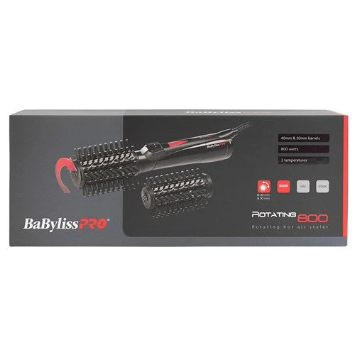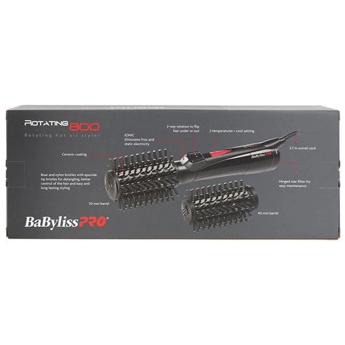 One tool, one hand, ultimate styling control! When a hair dryer combines with a rotating hot brush, you’ve got the best in unique, quick and easy styling. BaByliss PRO Rotating Hot Air Brush is a time-saving hot hair tool which creates stunningly shiny, smooth and volumized style. With two different sized barrels, 40 mm and 50 mm, styling options are maximised. With 800 watts of power, frizz-free styling is ensured thanks to ionic and ceramic technology. Ceramic coated barrels minimise heat damage, so BaBylissPRO Rotating Hot Air Brush is ideal for styling fine, damaged, coloured or chemically treated hair.