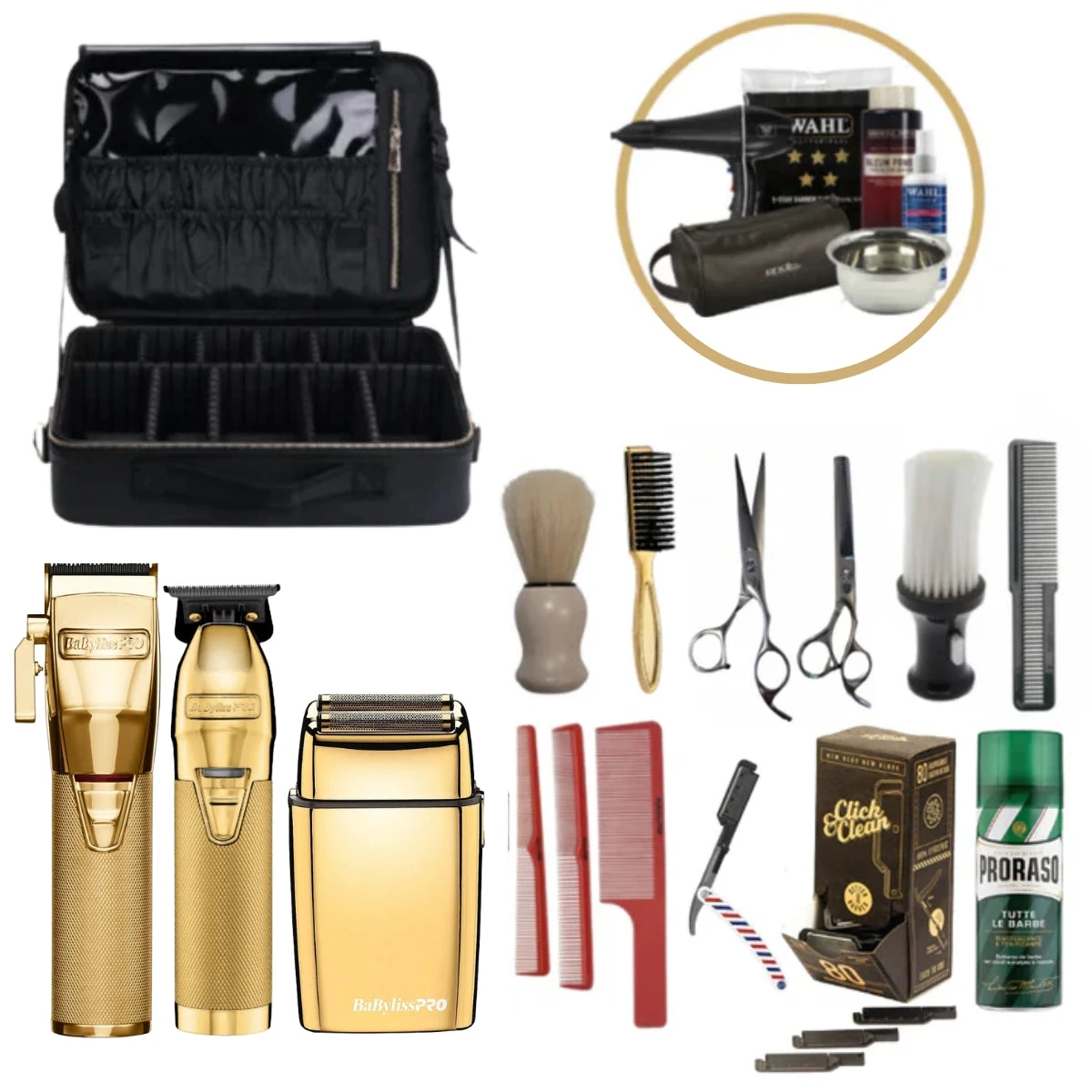THE COMPLETE ALL NEW BARBERCO PLATINUM BABYLISSPRO BARBERING KIT. INCLUDES THE FAMOUS BABYLISSPRO CLIPPER, TRIMMER & SHAVER IN 6 COLOUR COMBINATIONS AND AN AWESOME CARRY CASE CUSTOM BUILT TO STORE YOUR PRECIOUS EQUIPMENT. SETTLE FOR NOTHING LESS THAN A FULL PROFESSIONAL HAIRCUTTING SET READY TO BE PUT INTO IMMEDIATE USE!