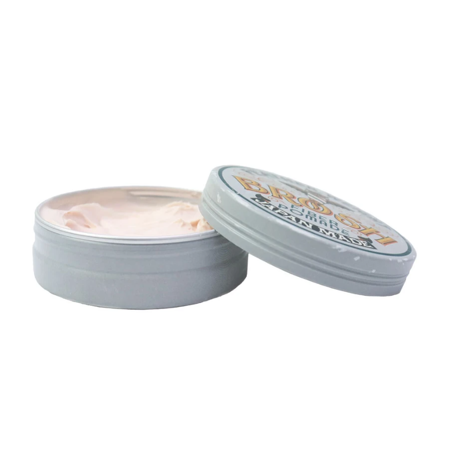 Brosh Feather Weight Fiber Pomade is a collaboration of Mr. Brothers Cut Club and the Legendary Shop Apache. Its unique formula was created to give a full, thick look with maximum flexibility. You can achieve several styles with one application. Brosh Feather Weight Fiber Pomade has a unique creamy texture that spreads evenly throughout the hair with subtle scents of citrus and woody hints. This water-based formula can be easily washed out with shampoo.