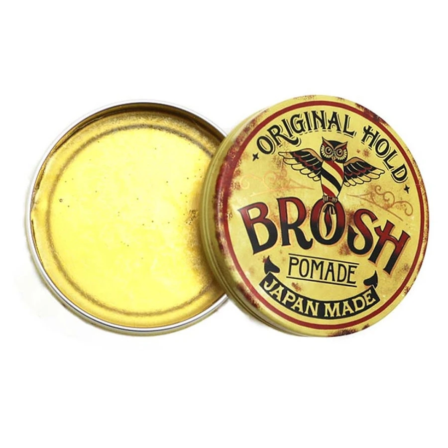Brosh Original Hold Pomade is specially designed to style thick heavy hair but can be used for all hair types. Achieve a fuller thicker look with a medium gloss and finish. Brosh Original Pomade is easy to model and has a light texture and is never sticky. Formulated in Japan, Brosh Original Pomade allows flexibility for styling with powerful hold and light scent. This water-based formula is easy to wash out with shampoo. Brosh Original Hold Pomade is made in Japan and packaged in our classic metal container.