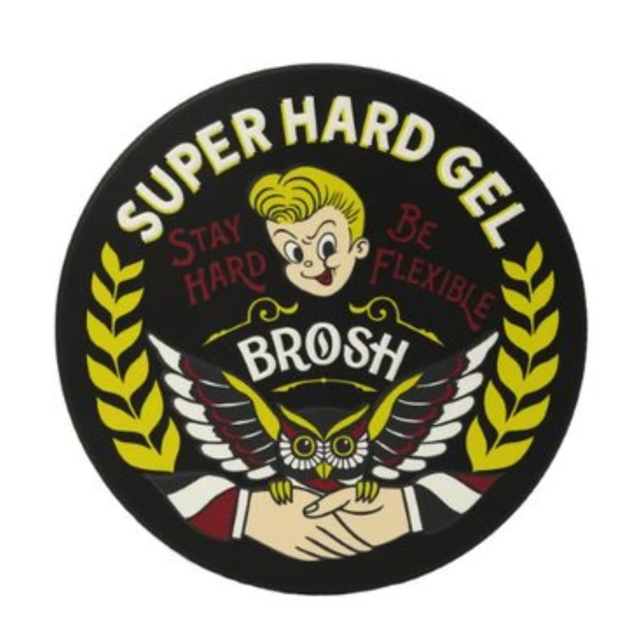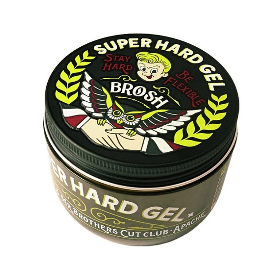 Brosh Super Hard Gel’s new formula provides a stronger hold and gloss. Durable but flexible this gel can be combined with Brosh Pomade for greater strength. Brosh Super Hard Gel can be used on all hair types and is great for combing and styling with a spiced aroma. Brosh Super Hard Gel is made in Japan and packaged in our classic metal container designed by the famous Mr. AOI of RUM ART WORKS.