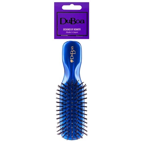 Duboa A one-of-a-kind Japanese made hair brush to remove tangles and knots without splitting or tearing even the thickest of hair textures. The extremely flexible nylon pins – four set together – grip hair without causing damage. Brushing daily spreads sebum, your hair’s natural conditioner from roots to ends. Producing a healthy sheen and promoting hair growth. Handbag size.