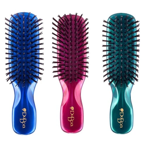 DuBoa A one-of-a-kind Japanese made detangling hair brush to remove tangles and knots without splitting or tearing even the thickest of hair textures. The extremely flexible nylon pins – four set together – grip hair without causing damage. Brushing daily spreads sebum, your hair’s natural conditioner from roots to ends. Producing a healthy sheen and promoting hair growth. Handbag size.