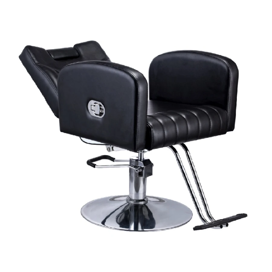 A classic salon chair featuring a spacious, cushioned seat and backrest, a durable footrest, and an adjustable, polished chrome base for versatile salon use. This chair also features a reclining function, making it ideal for Threading, Brow Treatments, Facial waxing and more.