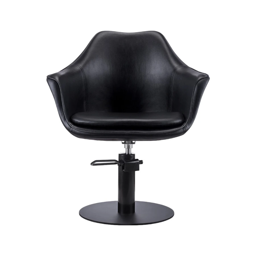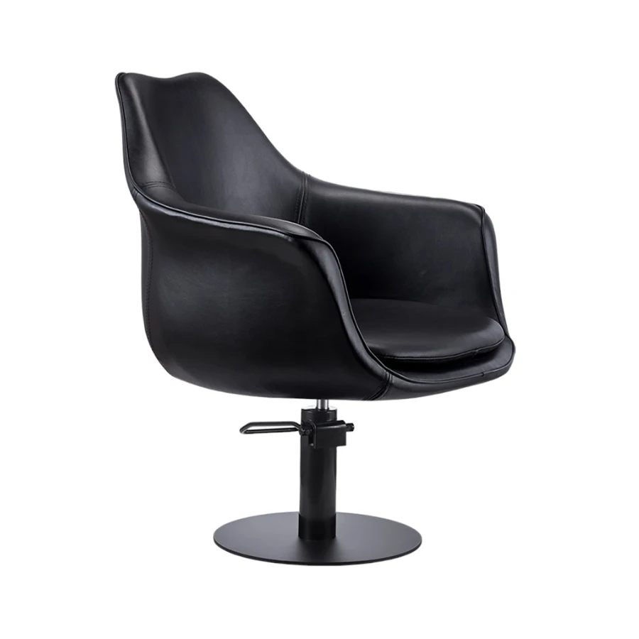 Featuring a bold, sculptural form, this salon chair combines fluid curves and a comfortable, embracing seat design with a sturdy, adjustable base, creating an elegant and functional statement piece for any modern salon environment.