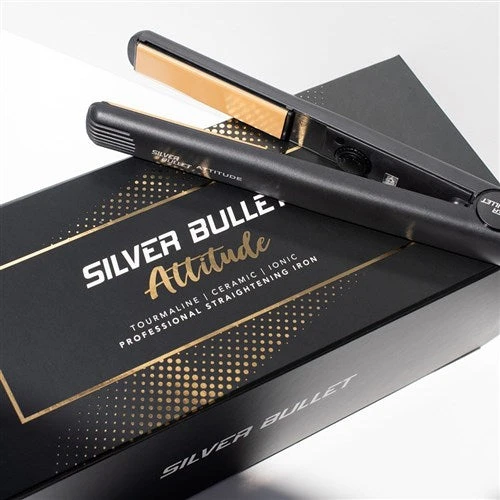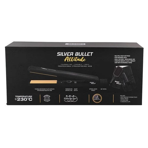 Style hair with attitude! The Silver Bullet Attitude Hair Straightener quickly smooths hair for head turning looks. Advanced Surround Heat allows you to straighten, curl and flick hair in record time! Simply dial in your desired temperature from 80°C to 230°C, to suit clients of all textures and hair types, and get smooth, silky, vibrant results with incredible shine.