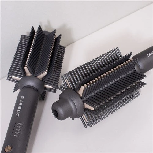 When a bouncy blow-dry is too time-consuming, reach for the incredibly fast and easy Silver Bullet Limitless Volumising Hot Brush . Simply brush your way to ultra-smooth, volumised styles with beautiful movement. This hot brush features a unique design for superior results. With a rounded barrel and nylon bristles for increased resistance, this clever hot brush delivers superior grip and tension for an incredibly smooth finish. Perfectly suited to curly, wavy and textured hair types prone to frizz. For use on dry hair. Limitless frizz-free styles in moments!