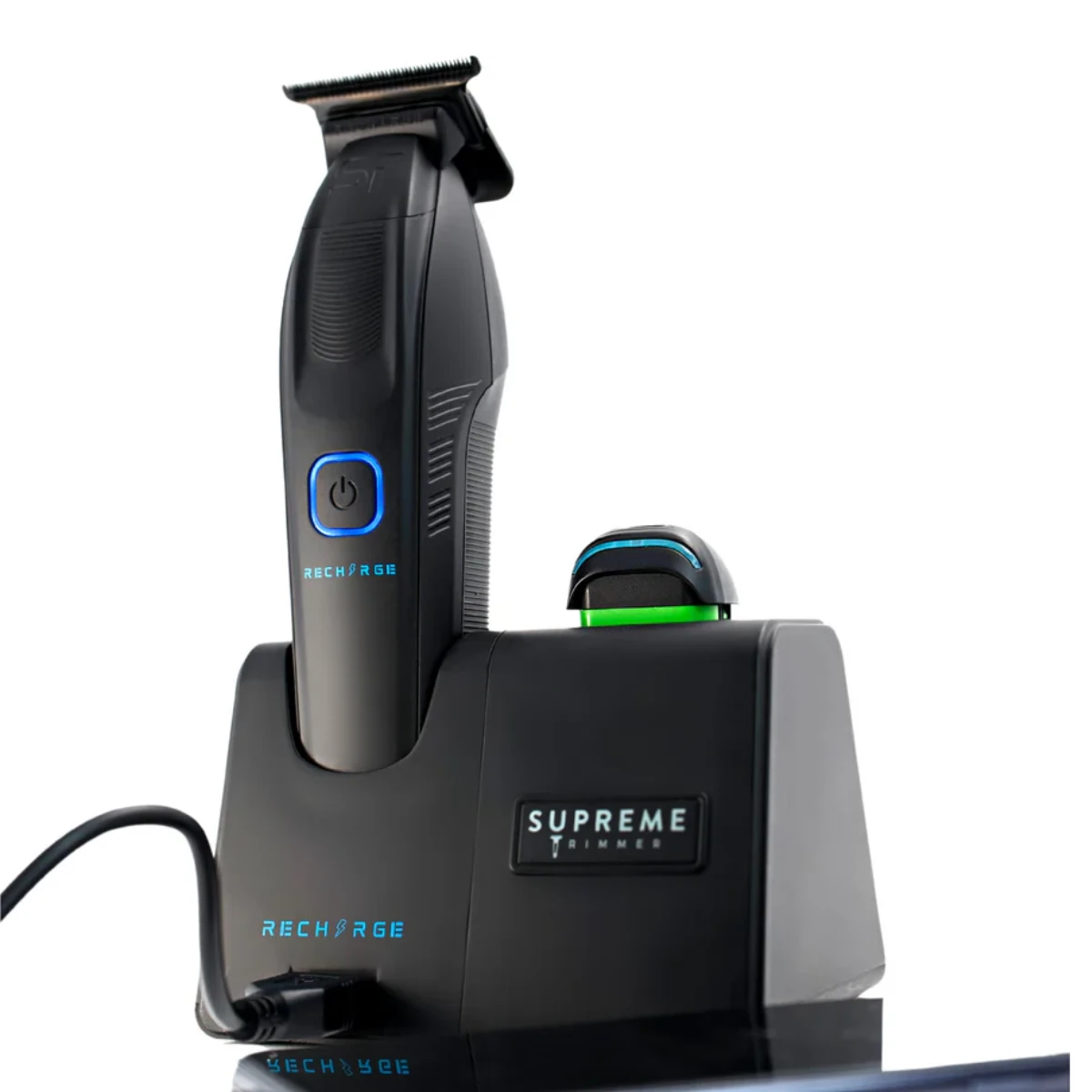 Introducing the RECHARGE Trimmer – power your Barber game with versatility! Charge three different ways and never miss a trim thanks to its rechargeable external battery, ensuring your style stays sharp whenever, wherever.