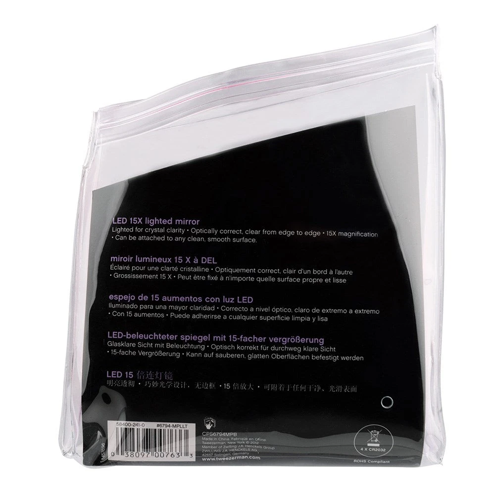 The Tweezerman LED Lighted 15x Mirror Pink is an innovative, lighted magnifying mirror which is optically correct and clear from edge-to-edge with no distortion – and lighted around the entire perimeter for total, crystal clarity. Ideal for tweezing, makeup application or contact lens insertion. Suction cups attach to any smooth, clean surface. Perfect for home and travel.